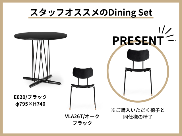 対象のダイニングテーブル+チェアご購入で、同仕様のチェア1脚プレゼント