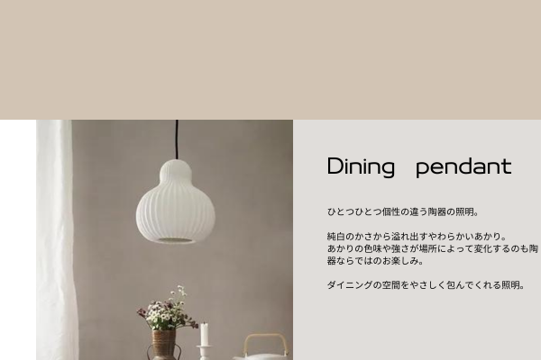 ダイニングを優しく包む照明は、陶器。