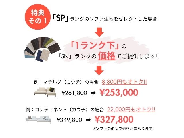 「SP」ランクのソファ生地を購入された場合