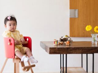 ハイチェアはダイニングテーブルとぴったりの高さとなり、より目線が揃うとことでお子様も安心して使用できます。