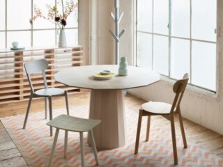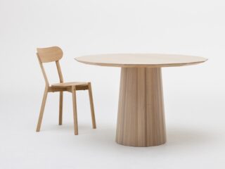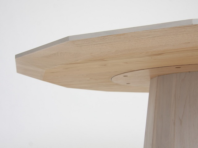 Collar Wood Dining (14角形の天板と樽のような脚が特徴的)