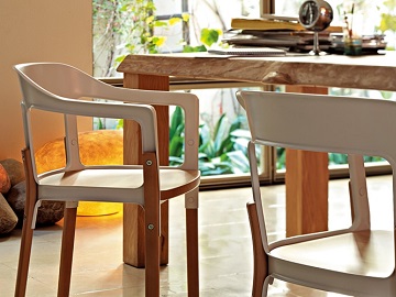 スチールと木という異なる素材の組み合わせと、緻密なフレーム構造が注目を集め、世界的にベストセラーとなったフランス・ブルレック兄弟によるチェア。木目が透けていたり、接合部分が表に見えるところがユニークです。