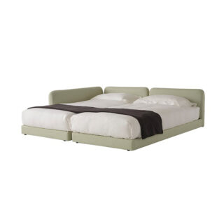 小さいお子様がいらっしゃる家庭では「ベッドにしたいけど、高さが気になる」「うちの子、活発で寝返りも凄くて…」と様々な意見があります。「ハグミル」は超低床ベッドですので、万が一落ちても安心の低さです(万が一なんて!と言う方は左右にアームをつけましょう)金属や木のフレームが見えておらず、布製のカバーリングは触り心地もあたたかく、見た目も非常に可愛いです。成長に合わせて分けて使う事が出来るので、将来を見据えたベッドです。