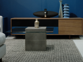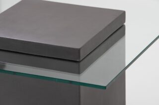 コンクリートという重厚感のあるマテリアルを使用しながらも、天板にクリアガラスを組合せることで、空間に圧迫感を与えることなく、さりげなく様々なテイストのインテリアに溶け込みます。