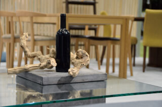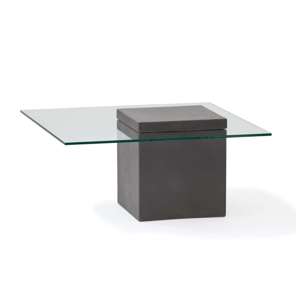 無機質なコンクリートとガラスという、異素材コンビネーションが特徴のコーヒーテーブル。