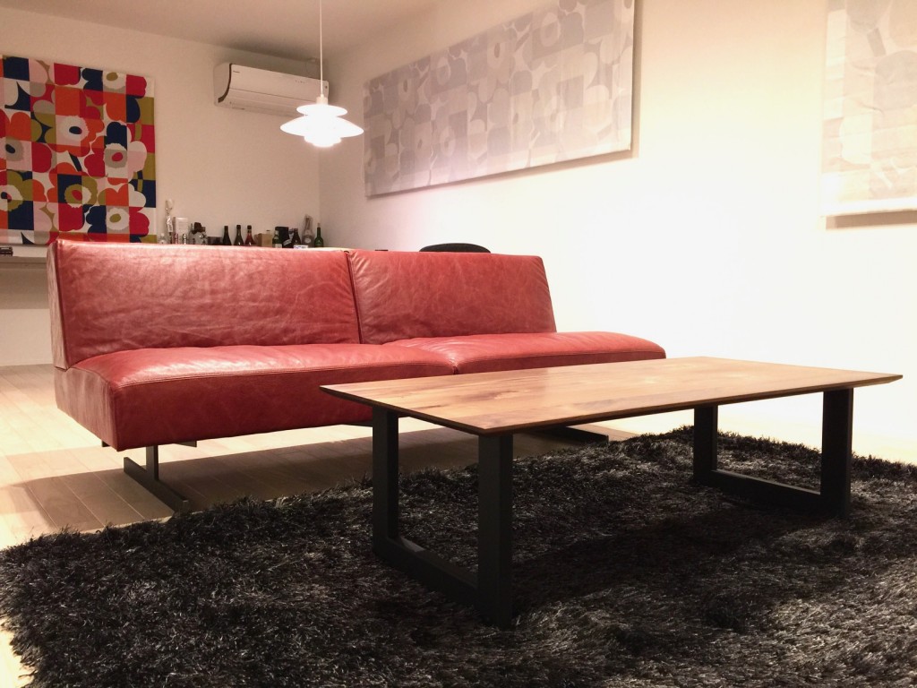 リビングテーブルは、BANソファに合わせて、当店オリジナルブランド”HTD FURNITURE”のリビングテーブルを合わせました。