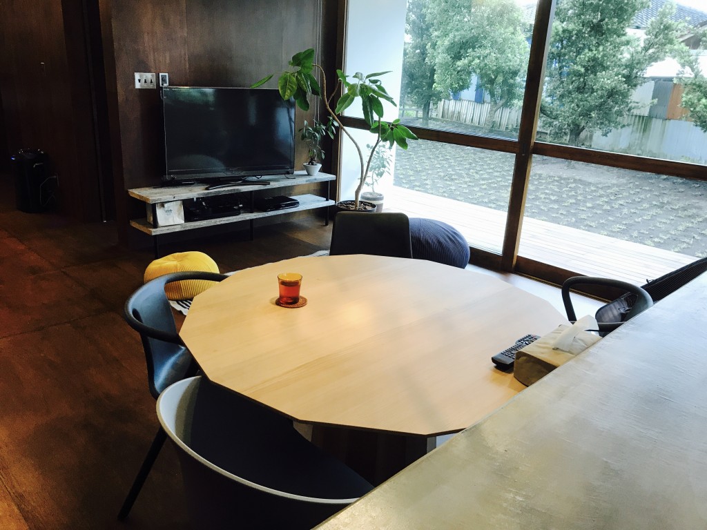 床とテーブルの色に差をつけつことで、両方の良さがより引き立ちますね!