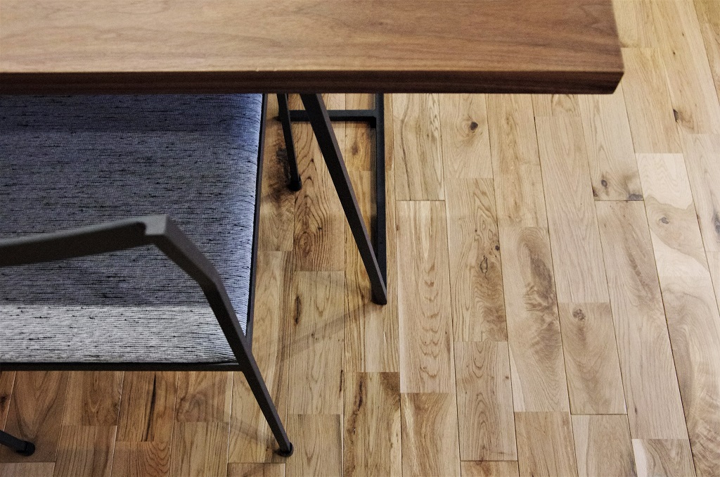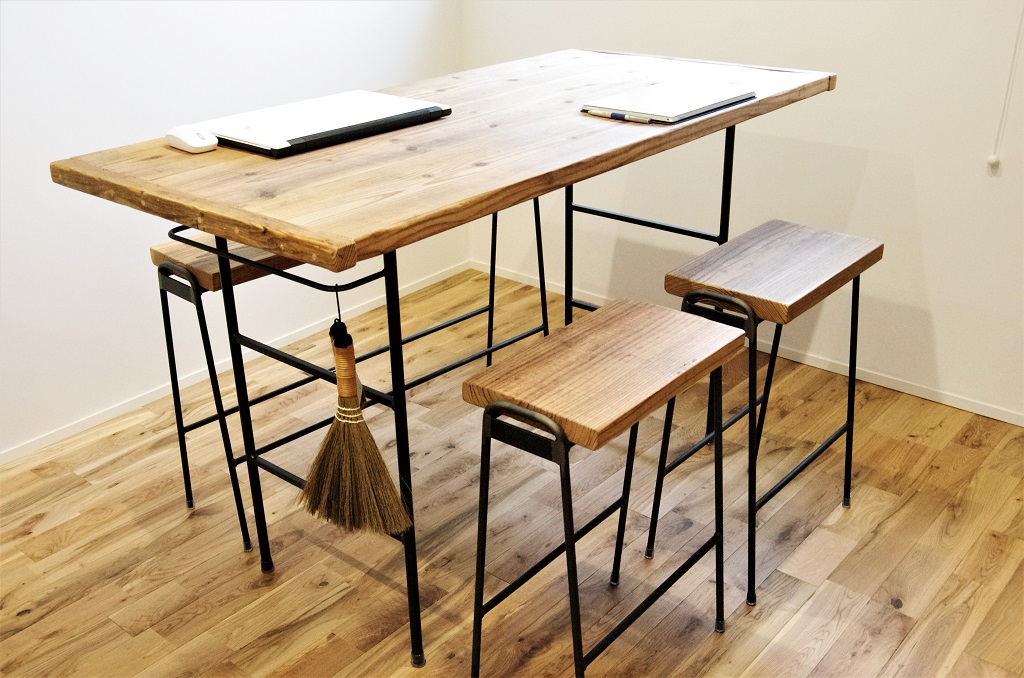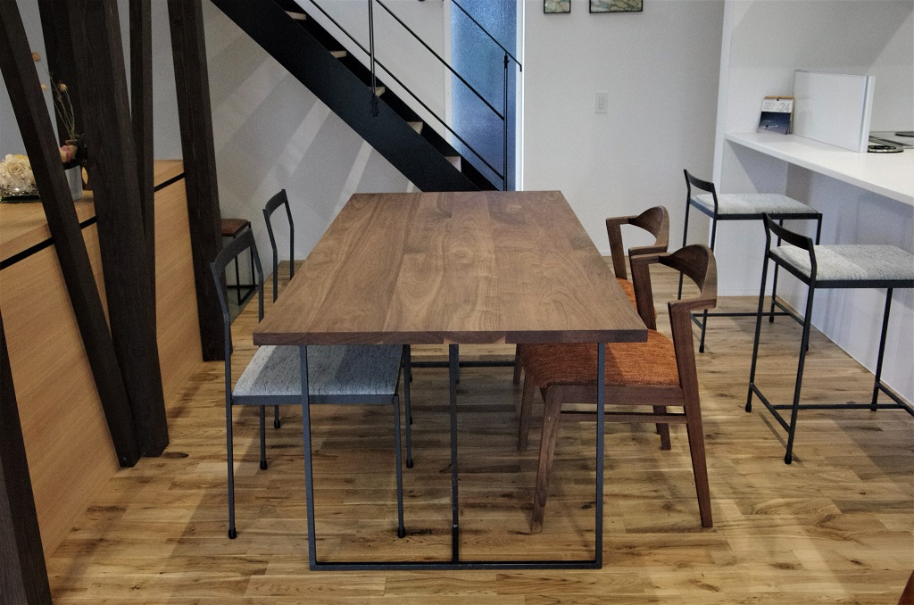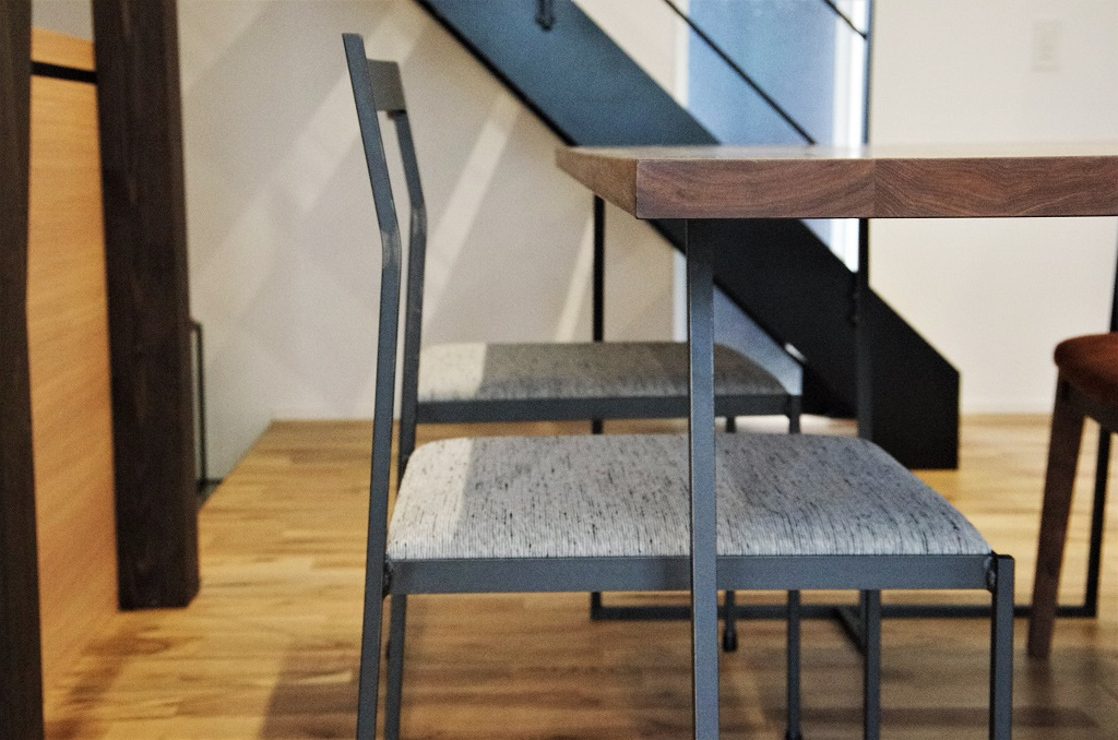 こちらも、クロテツ(杉山製作所)のSUMIダイニングテーブルを中心に鉄脚をアイコンにコーディネイト。