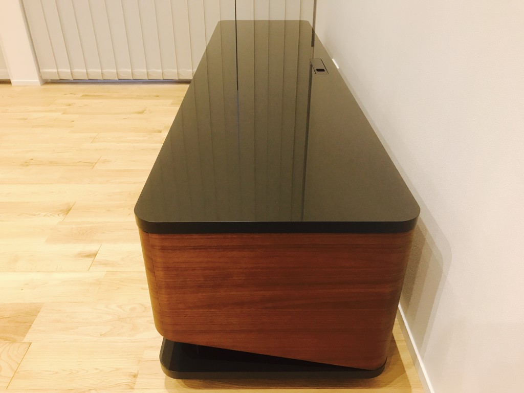 デザイナーは、リビングの真ん中においても良いようにと、背面までキレイに仕上げ、配線を隠せるデザインを施してあります。