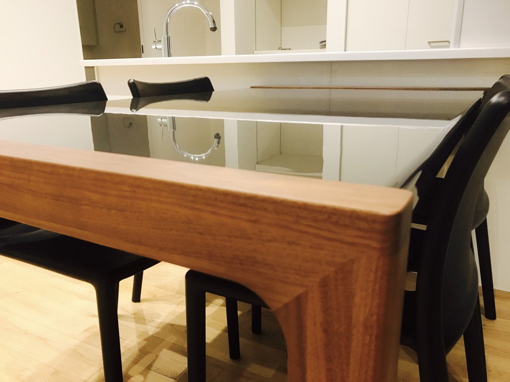 天板に反射して映る室内が、鮮明なのが分かりますか?天板の質の良さが伝わりますね!