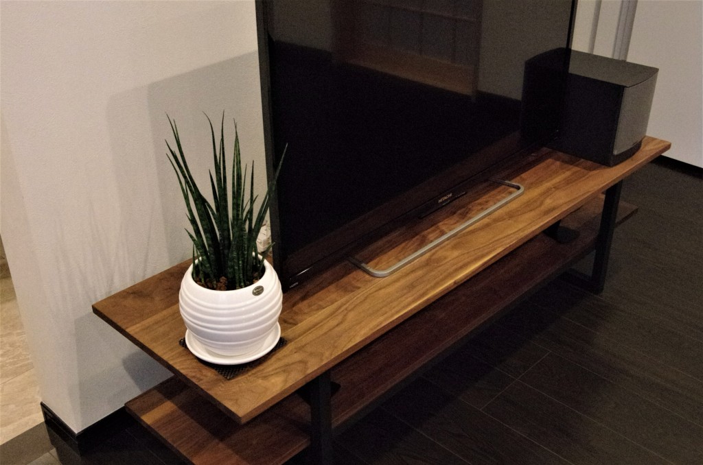 無垢材(ウォールナット)とスチールを組み合わせた、あるようでなかったシンプルでスタイリッシュなTVボードです。