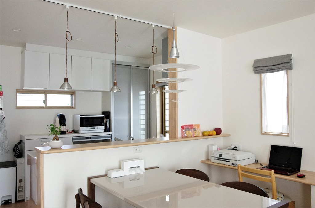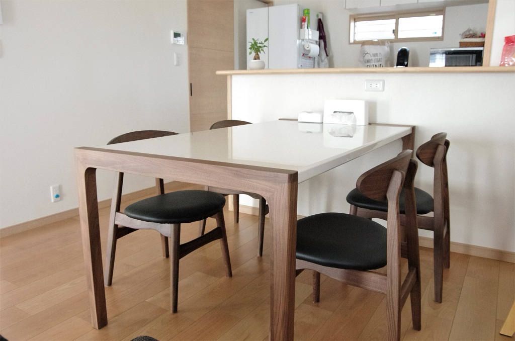 当初は無垢材のテーブルをご検討されていたK様でしたが、bridge table(ブリッジテーブル)のシンプルなデザイン、傷や汚れに強くメンテナンスがしやすい点などが決め手となりました。