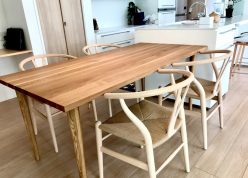 Yチェアの脚に合わせて、ダイニングテーブルの脚も丸テーパーに加工。