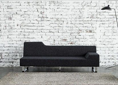 濃いグレーの張地と脚のクロムメッキの組合せが、よりスタイリッシュな雰囲気を醸し出します。