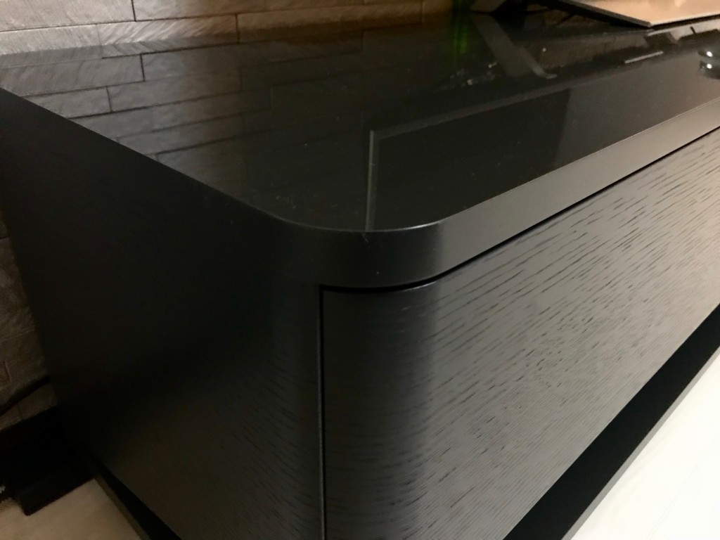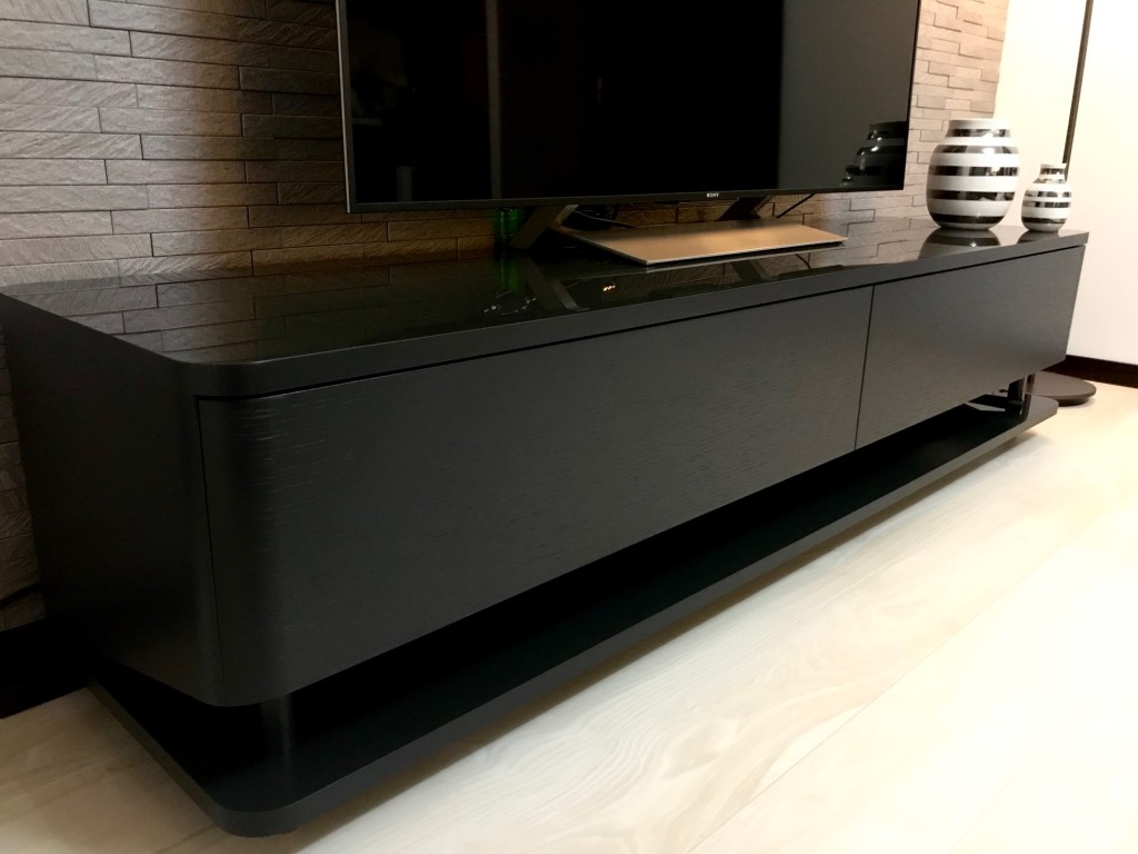 こちらは背面のグレーのタイルとのコントラストを付けるため、bellacontte(ベラコンテ)のwedge AV board(ウェッジテレビボード)をセレクト。