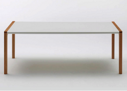 DHラミネートの天板と無垢脚の異素材が組み合わさり、面白いデザインのテーブルに仕上がっています。