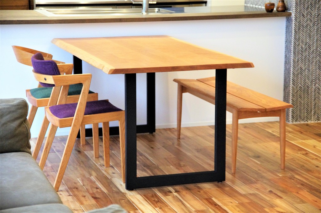 ”耳”を残したテーブルは和テイストに偏りがちですが、アイアン脚を使用することで、モダンテイストに振ることができます。