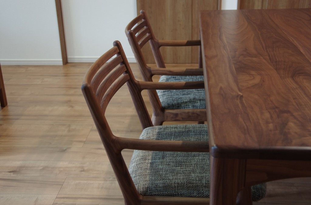 そこでセレクトしたのは、曲線と細いラインが綺麗なシキファニチアのノースダイニングテーブルとスリットアームチェア。