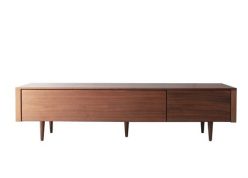 テレビが壁かけだったため、シンプルかつ脚付きのテレビボード、志岐インテリア工業のRISE(ライズ)をセレクト。