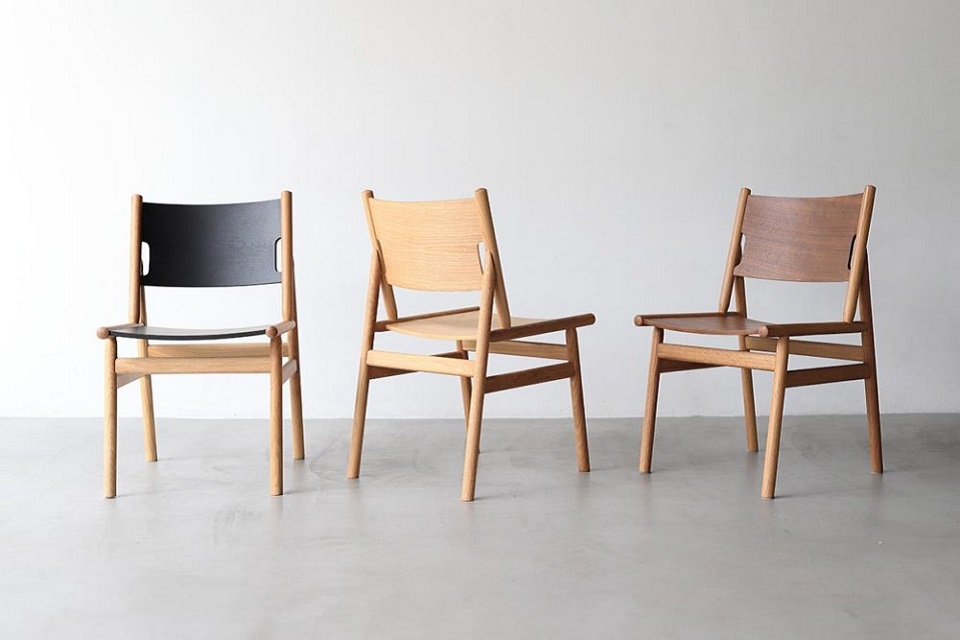 今回は細身のラインが軽やかなLYSチェアに合わせて、天板は面取り加工でスッキリとしたタイプにしています。