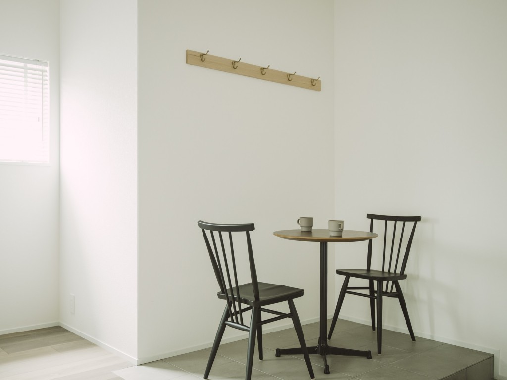 床の色に合わせて、ナチュラルカラーをベースにアクセントで黒を利かせています。