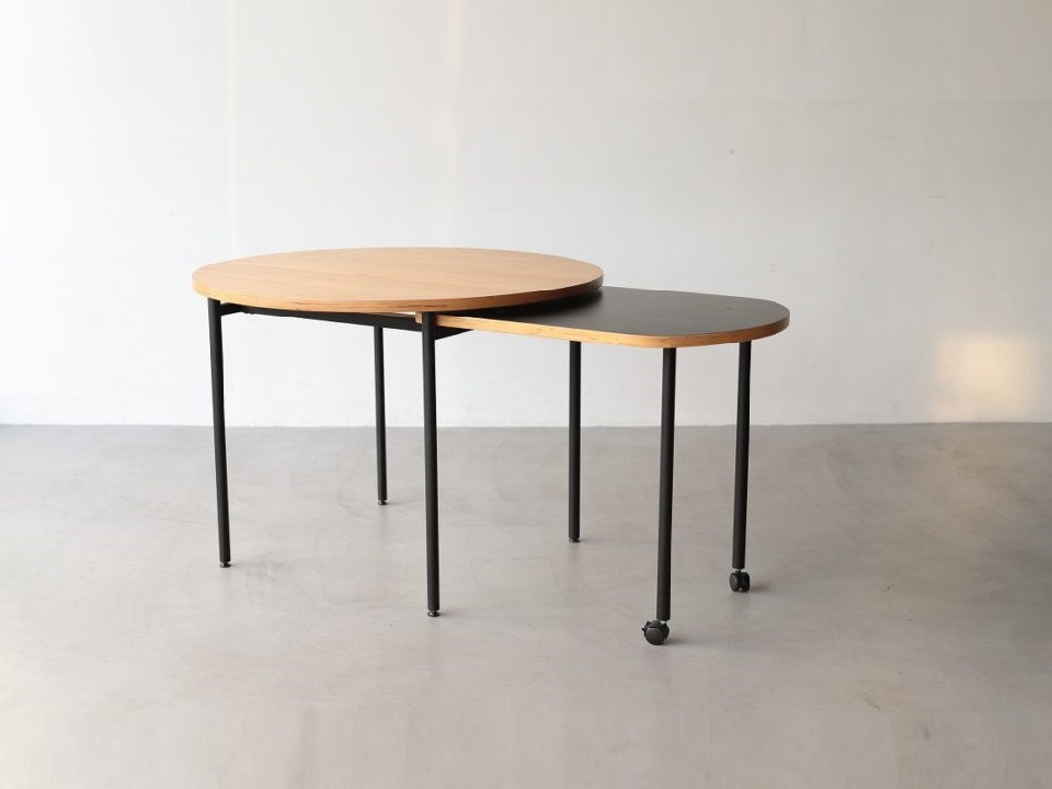 写真はありませんが、別のスペースに木目の表情とブラックラッカーのコントラストが綺麗なKAPPEL(カペル)伸長式ダイニングテーブルもご納品させていただいてます。