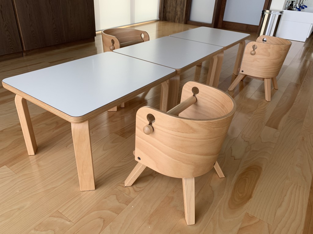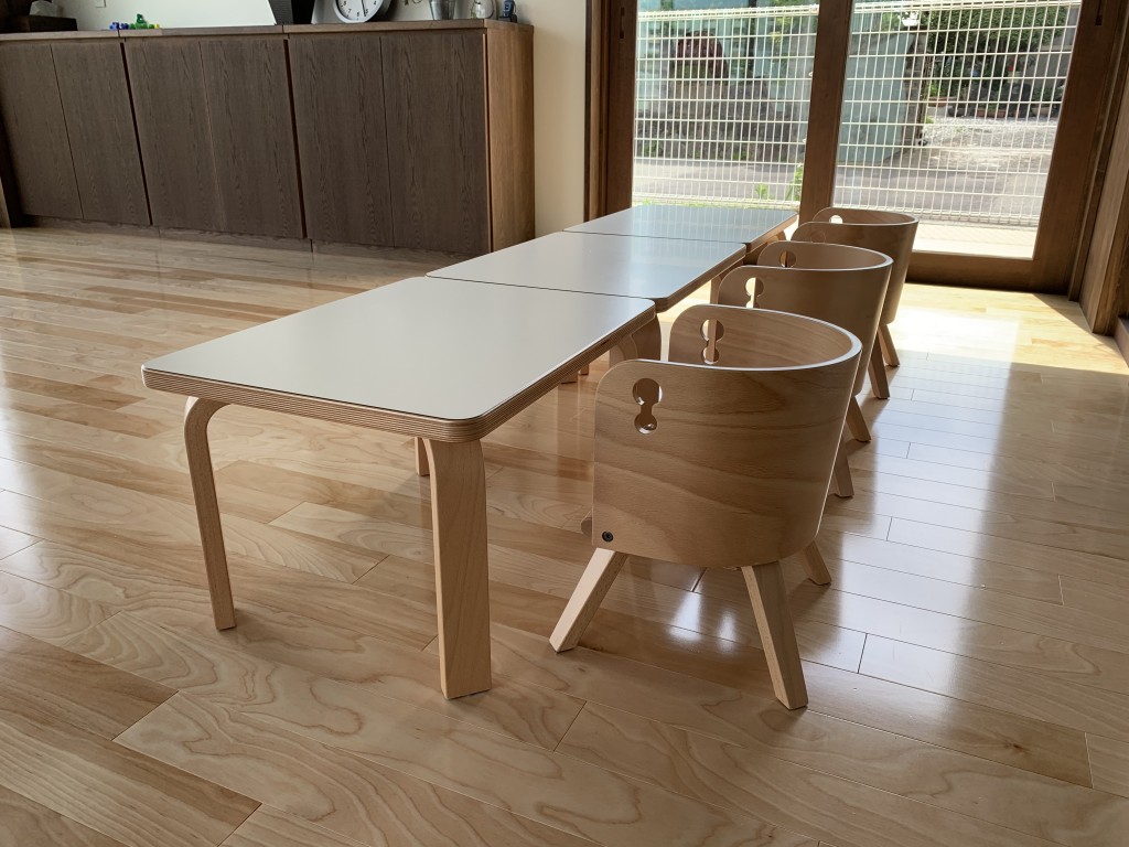 チェアはCarota-mini(カロタ-ミニ)、テーブルはCarota-teble(カロタテーブル)。