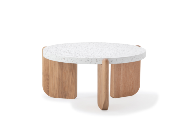 センターテーブルは、moda en casa(モーダエンカーサ)のNATIVE 70 coffee table(ネイティブ70コーヒーテーブル)です。天板のテラゾー(人造大理石)が存在感があり、自然との共生感をより醸し出しています。