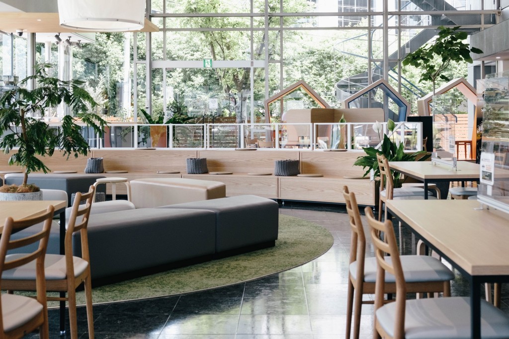 屋外テラスから光が差し込むコワーキングスペースは、個別ブースもあり、会員制によるスペースの提供を計画されているそうです。